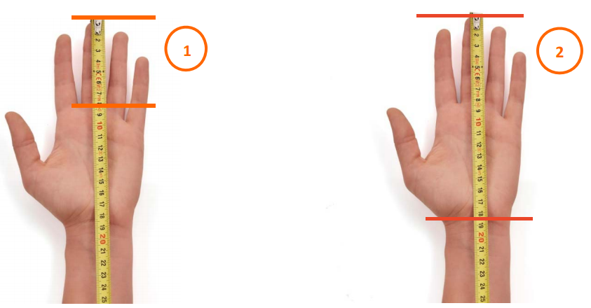 2 - A l'aide d'un mètre ruban ou d'une règle, mesurez du haut du doigt au pli du poignet.