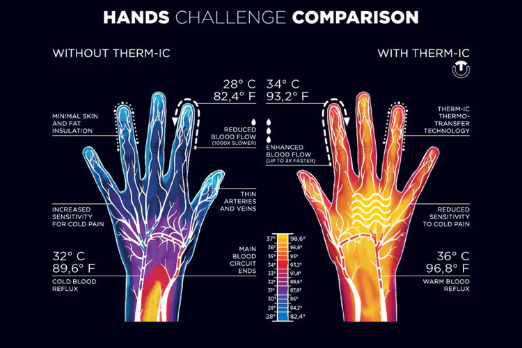 It is important to take care of our hands and feet in all circumstances. When the body’s endogenous insulation is insufficient, external insulation is necessary for a balanced body temperature and well-being. The aim is to keep your body in the ideal comfort zone, i.e. a temperature of 37° C.